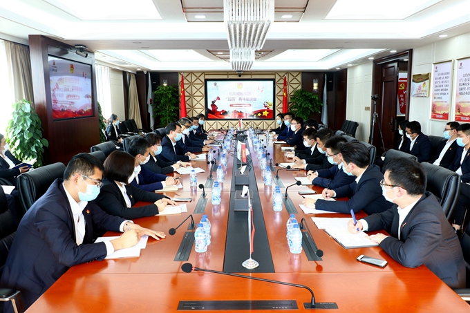 座談會在全場合唱中國共青團團歌的嘹亮歌聲中拉開帷幕。
