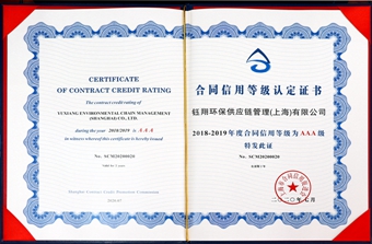 日前,鈺翔控股集團旗下鈺翔環(huán)保供應鏈管理(上海)有限公司、上海久源經(jīng)貿發(fā)展有限公司被評為“2018-2019年度上海市守合同重信用企業(yè)”,并榮獲AAA級合同信用等級認定。