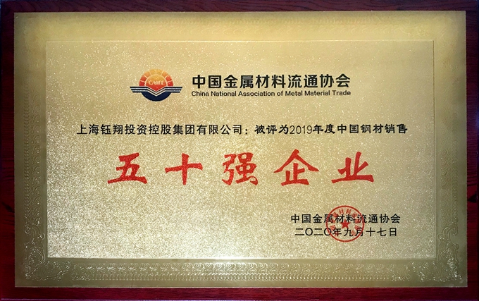 近日,中國金屬材料流通協(xié)會(huì)第十五屆中國鋼鐵流通促進(jìn)大會(huì)在石家莊隆重召開。會(huì)上,上海鈺翔投資控股集團(tuán)入選“2019年度鋼材銷售五十強(qiáng)企業(yè)”和“2015-2020年度鋼鐵產(chǎn)業(yè)鏈發(fā)展功勛企業(yè)”,集團(tuán)董事長葛華榮膺“2015-2020年度中國金屬材料流通協(xié)會(huì)功勛人物”。