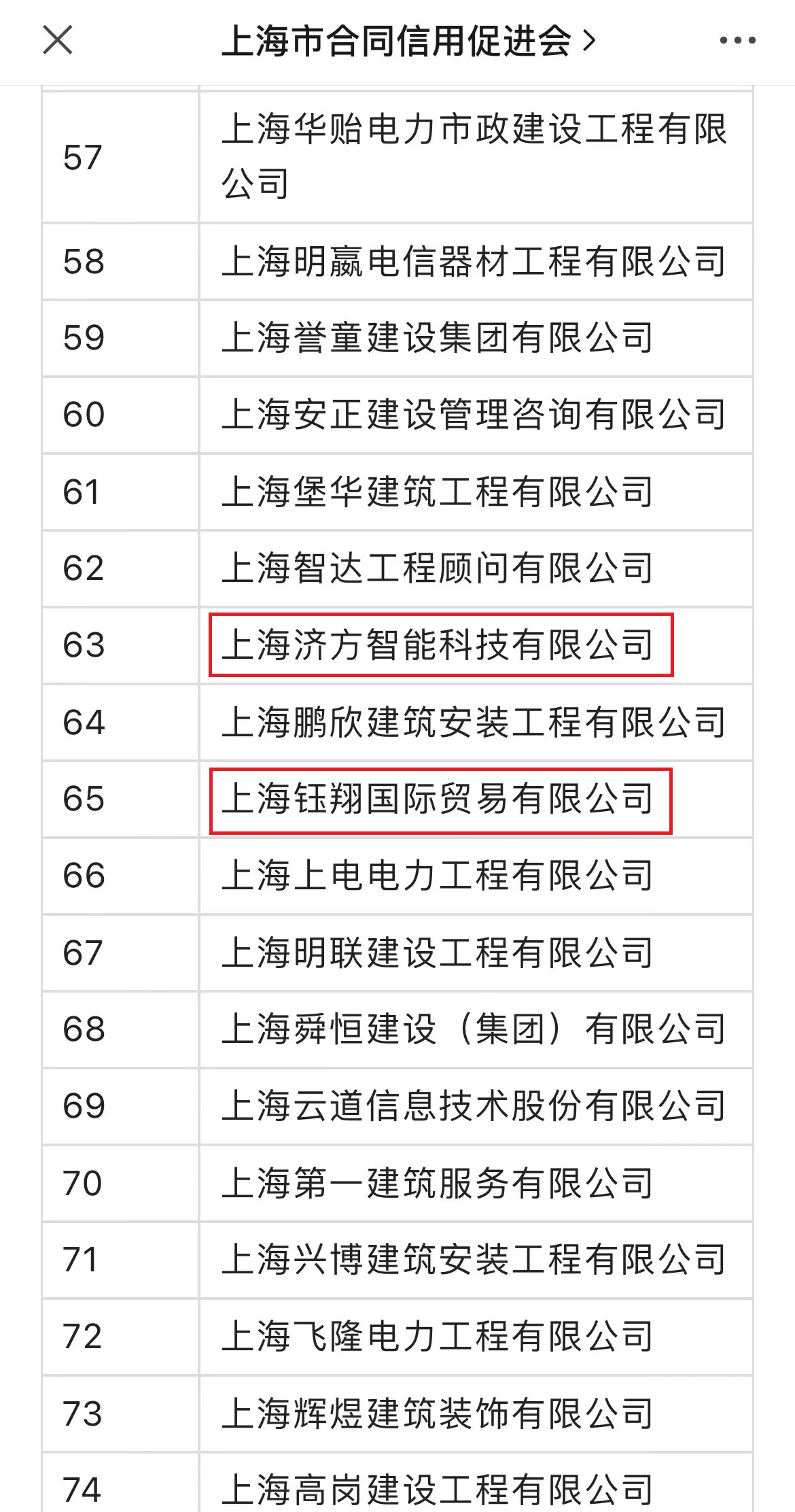 71日,上海市合同信用促進會公示了上海市1501戶企業新晉2020-2021年上海市守合同重信用企業光榮榜。